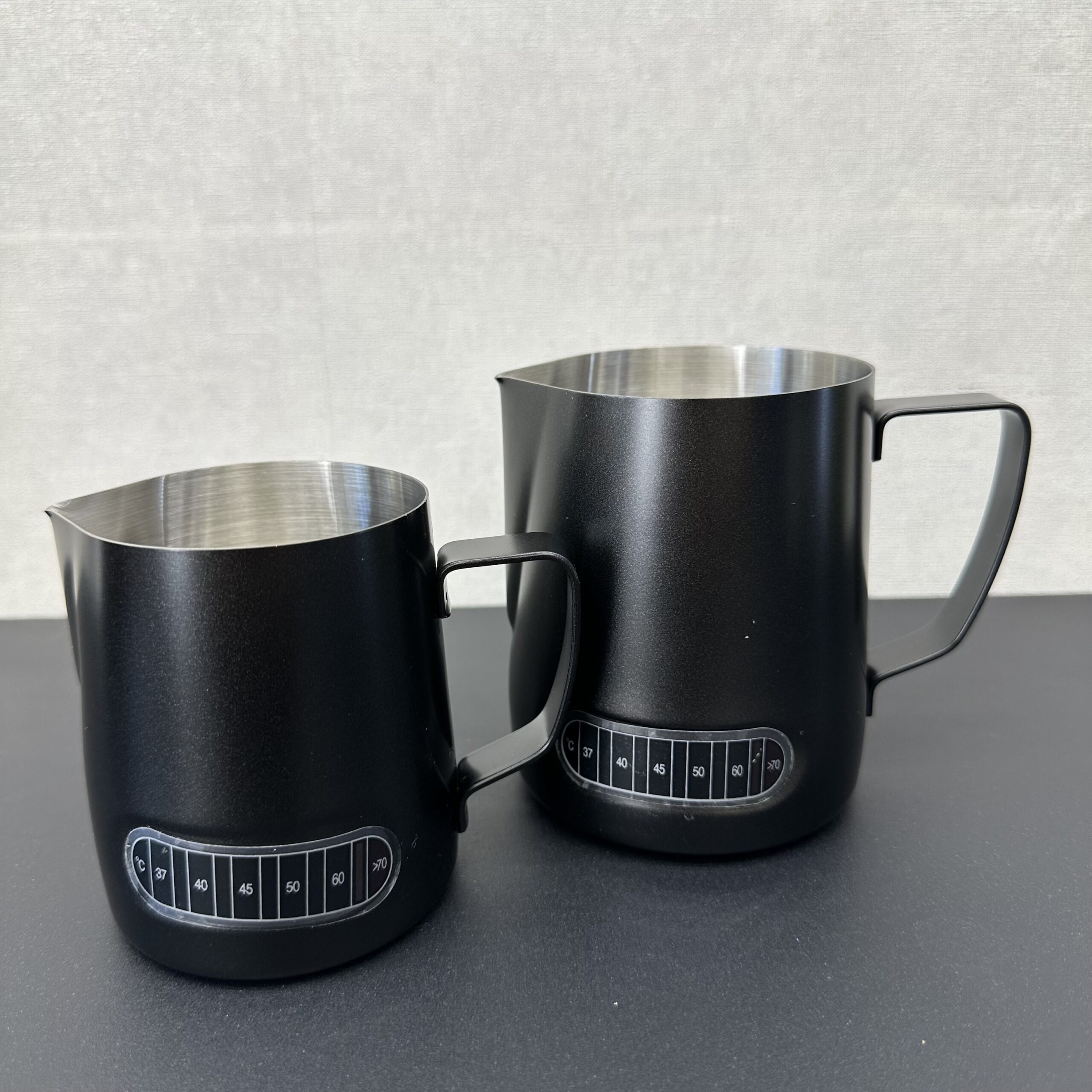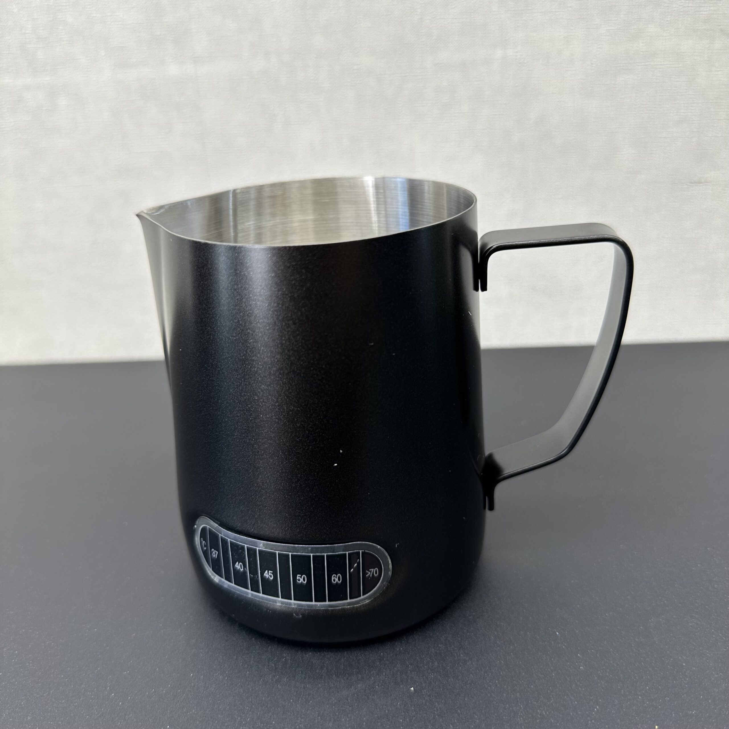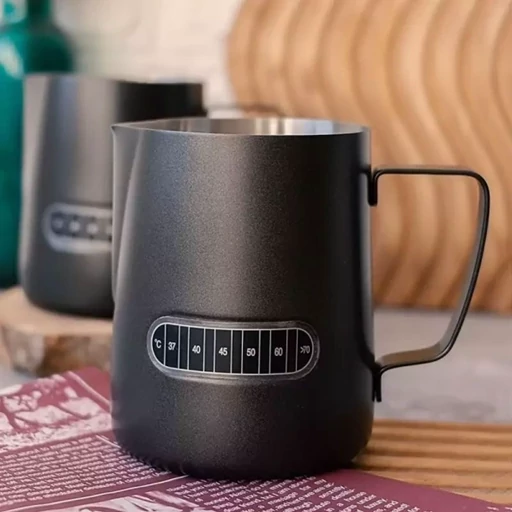 پیچر شیر دماسنج دار دودی با رنگ ثابت در دو سایز ۳۵۰ و ۶۰۰ میلی لیتری ( thermometer Pitcher ) یکی از لوازم جانبی مورد نیاز برای هر باریستای حرفه ای است. پیچر به همان ظرف مخصوص تهیه کف شیر، گفته می‌شود که جهت استفاده، در زیر نازل بخار دستگاه‌های اسپرسو ساز طراحی شده است. یکی از خصوصیت های منحصر به فرد این پیچر وجود دماسنج بر روی بدنه‌ی پیچر است به صورتی که با تغییر دمای مایع درون ظرف ،دمای موجود را با تغییر رنگ درجه موجود ، مشخص میکند این پیچر از جنس استیل ضد زنگ است . از این ظرف با طراحی دسته‌ی محکم، پیچری خوش دست برای لاته آرت به شمار می‌رود